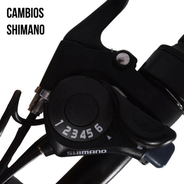 - 6 Cambios Shimano: Permiten un cambio de marchas suave y preciso para una mejor experiencia de conducción.