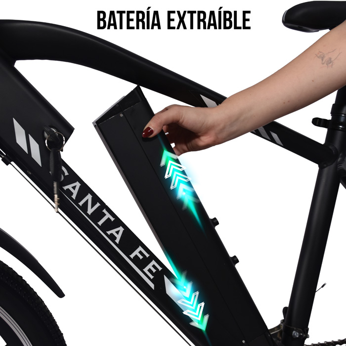 La Bici Eléctrica Santa Fé es una combinación de potencia, rendimiento y seguridad. Es la elección perfecta para aquellos que buscan una bicicleta robusta con todas las características necesarias para que te transportes por la ciudad.