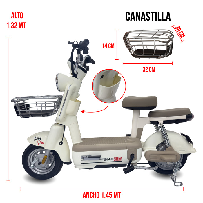 La motobici modelo Twin Plus es una bicimoto eléctrica diseñada para quienes buscan moverse por la ciudad con estilo, comodidad y seguridad. Gracias a su diseño moderno, rodado 14” y variedad de colores, se adapta perfectamente a la vida urbana. Incorpora un motor de 700 W y una batería de ácido 48V 20Ah, lo que le permite alcanzar una velocidad de hasta 35 km/h en modo asistido y una autonomía de hasta 50 km, ideal para recorridos largos dentro de la ciudad.