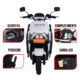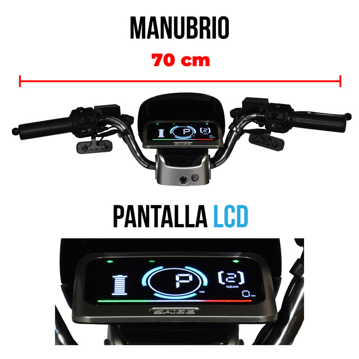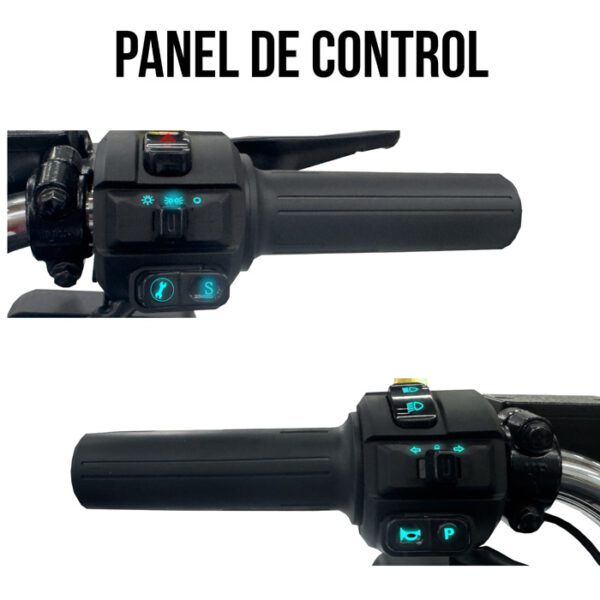 - Control de alarma: Con potente alarma, prende la moto, la apaga y es capaz de bloquear las llantas.