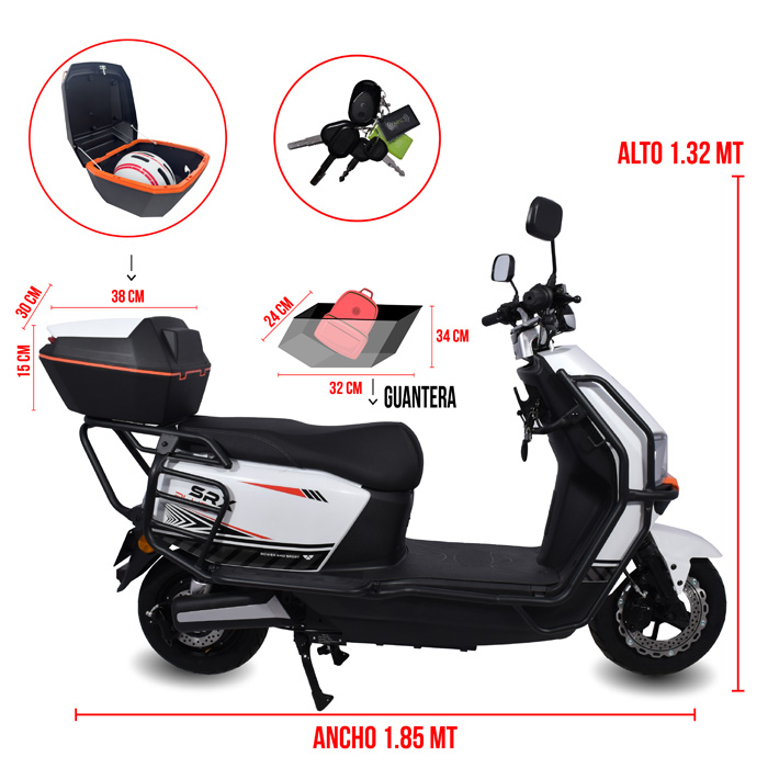 - Cajuela bajo asiento: De 24 x 32 cm, con 34 cm de fondo y llave que te permite guardar un pequeño mandado o lo que decidas.