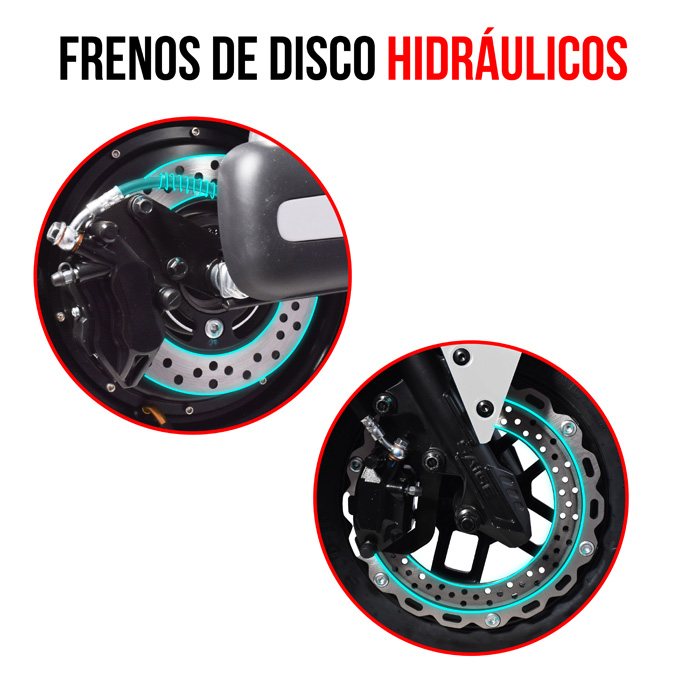 - Frenos Delanteros y Traseros: De disco hidráulicos.