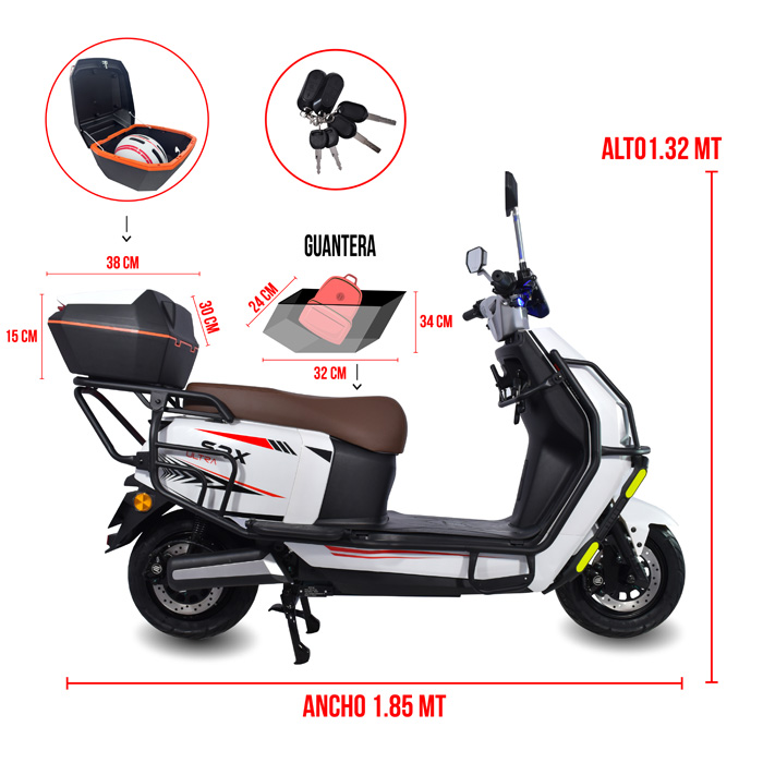 - Cajuela bajo asiento: De 24 x 32 cm, con 34 cm de fondo y llave que te permite guardar un pequeño mandado o lo que decidas.